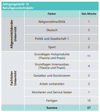 Ein Ausbildungsplatz als Schreiner/in ist zur Teilnahme am BGJ derzeit nicht erforderlich.
